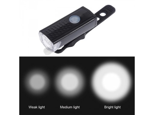 ✔️ trzy tryby oświetlenia przedniej lampki: mocne światło, stroboskop, słabe światło