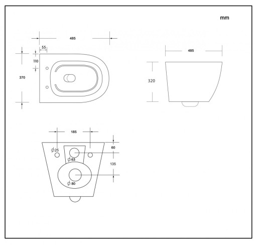 - Do zamontowania wiszącej miski WC o rozstawie śrub mocujących 180 mm lub 230 mm