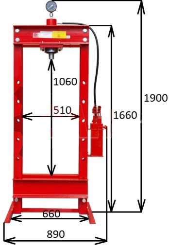 Za pośrednictwem dołączonej dźwigni można uzyskać nacisk do 30 ton, precyzyjnie kontrolowany poprzez manometr. Dwustopniowa pompa umożliwia szybszy wysuw tłoka jak i wolniejszy, bardziej precyzyjny.