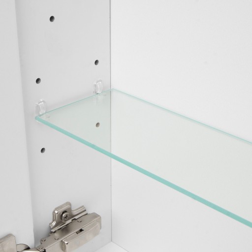 Wnętrze szafki kryje dwie solidne szklane półki o grubości 4 mm. To idealne miejsce na przechowywanie kosmetyków i akcesoriów łazienkowych, a dzięki możliwości regulacji wysokości półek, możesz dostosować przestrzeń wewnętrzną do swoich konkretnych potrzeb.