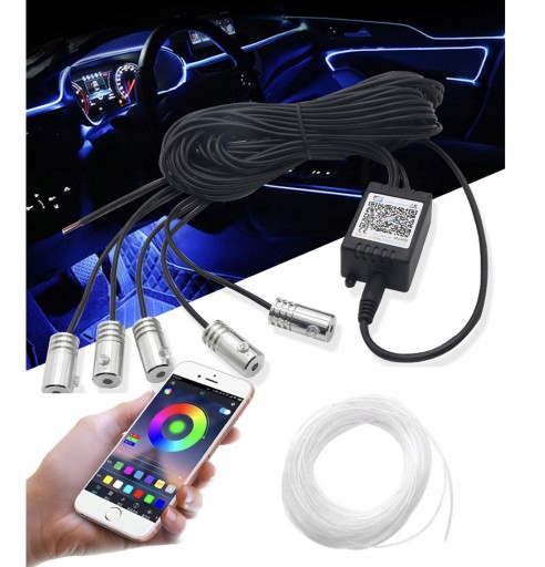 RGB СВЕТОДИОДНАЯ ЛЕНТА ДЛЯ АВТОМОБИЛЯ 6М ВОЛОКНО ОПТИЧЕСКОЕ