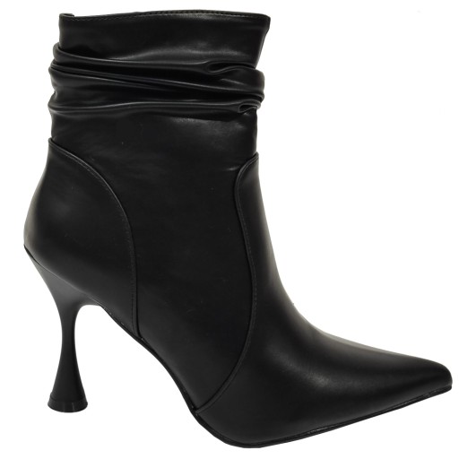 Eleganckie, bardzo zgrabne botki damskie o lekkiej linii. Przyciągający wzrok model z ciekawym obcasem, który jest delikatny a jednocześnie bardzo stabilny. Delikatne marszczenie górnej części cholewki w połączeniu z prostym fasonem sprawia że jest to model uniwersalny ale posiadający wyraźny charakter. Wyjątkowo kobiecy botek idealny dla wszystkich miłośniczek wysokich obcasów, które niezbyt pewnie czują się na klasycznej szpilce.