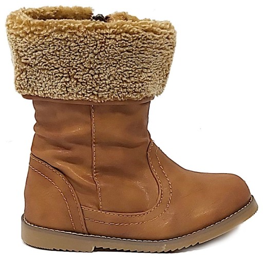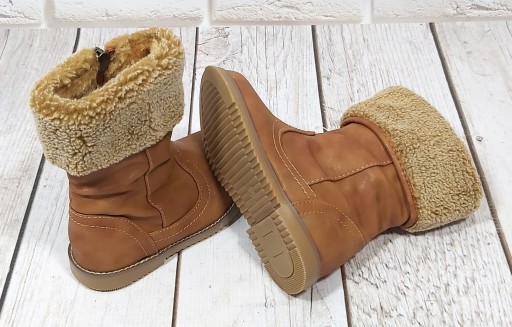 Wykonane z miękkiej skóry ekologicznej ocieplane puchatym kożuszkiem. Od wewnętrznej strony suwak ułatwiający zakładanie.