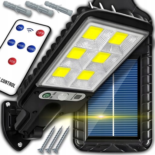 LAMPA SOLARNA Z CZUJNIKIEM RUCH ZMIERZCHU LED ZEWNĘTRZNA OGRODOWA + PILOT