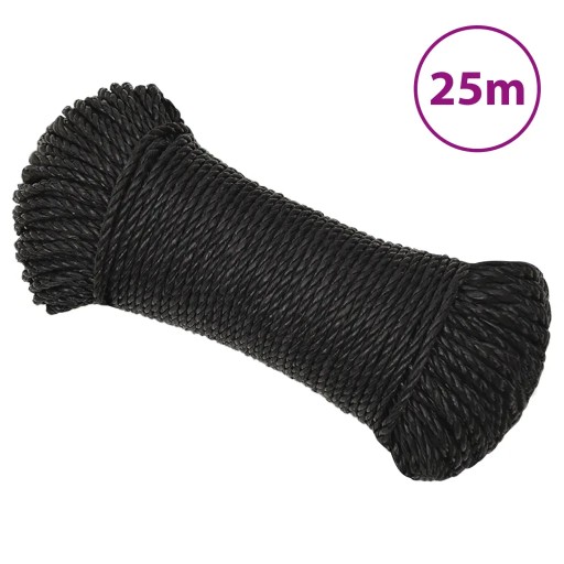 Черная рабочая веревка 8 мм 25 м полипропилен