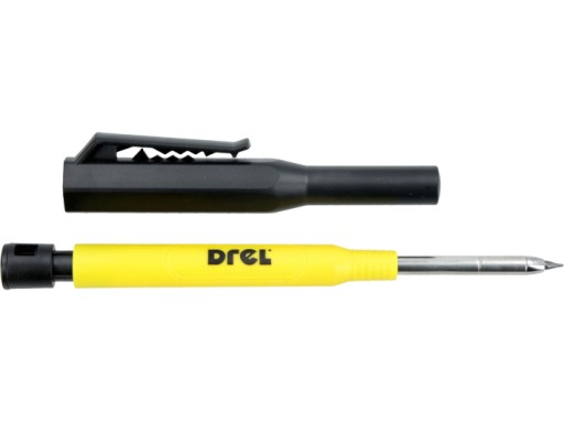 Rysik stolarsko-murarski ze zintegrowaną temperówką, oferowany w zestawie z 12 grafitowymi wkładami w trzech kolorach: czarnym, czerwonym oraz żółtym.