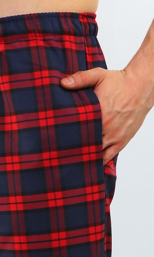 Piżamowe spodnie męskie Milo są długie, komfortowe przyjemne w dotyku. W pasie mają szeroką gumę, dodatkowo ściągane są sznureczkiem, mają też rozporek z dwoma guziczkami a po bokach wygodne kieszenie. Są praktyczne i niezwykle wygodne, dlatego też służą do spania ale też do odpoczynku w domu. Charakteryzują się wzorem w modną kratę.