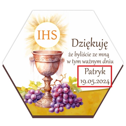 Ten uroczy personalizowany magnes z nadrukiem stanowi wyjątkowe podziękowanie dla gości za ich udział w uroczystości Komunii Świętej. Dzięki niemu można wyrazić wdzięczność w uroczysty i praktyczny sposób.