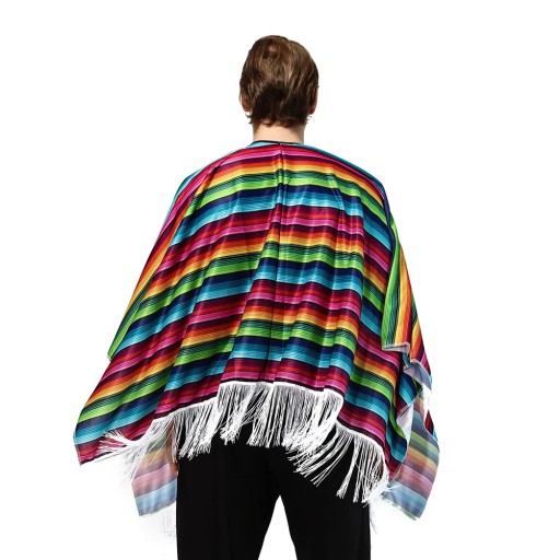 Jest to płaszcz w stylu meksykańskim dla mężczyzn. Posiada stylowe frędzle z frędzlami. Overized z otworem na głowę, będzie pięknie układał się wokół górnej części ciała. Projekty płaszczy Batwing to nowy trend w modzie. Kostium na Halloween, świetny na każdą przebranie, cosplay, odgrywanie ról, przebieranki.