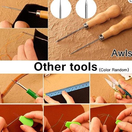 1. Zestaw do obróbki skóry: ten zestaw do szycia skóry zawiera 10 rolek woskowanej nici, 1 nożyczki, 1 naparstek, 1 szydło, 32 igły, 1 butelkę z igłą, 1 miarkę, 1 x zmywacz do nici, 1 x nawlekacz, 1 torbę do przechowywania . Bogate narzędzia mogą zaspokoić Twoje różne potrzeby, bardzo odpowiednie dla początkujących i podróżników.