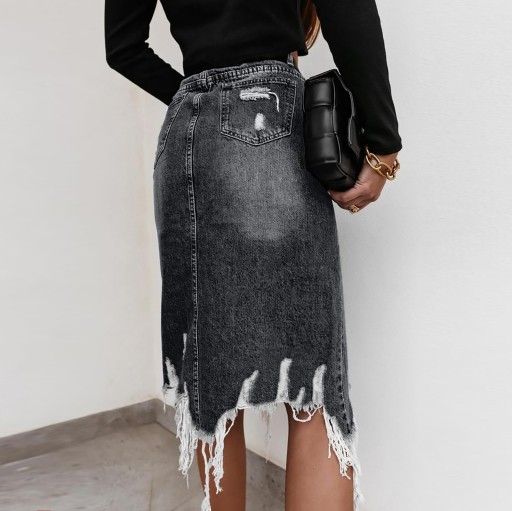 🌟Nie zapomnijmy również o naszej znakomitej propozycji - jeansowej spódnicy w stylu półokrągłym. Ten klasyczny fason nigdy nie wychodzi z mody i z pewnością stanie się niezbędnym elementem Twojej garderoby. Wykonana z wysokiej jakości denimu, ta spódnica jest trwała i wygodna. Jej nieco zniszczona faktura nadaje jej niebanalny wygląd, a delikatne frędzle dodają jej luźnego charakteru.