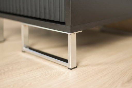 Nóżka-ramka w kolorze srebrnego chromu, doskonała do narożników, dodająca elegancji i stabilności. Idealna jako wyrafinowany element wykończeniowy mebli, harmonizująca z różnorodnym stylem wnętrza