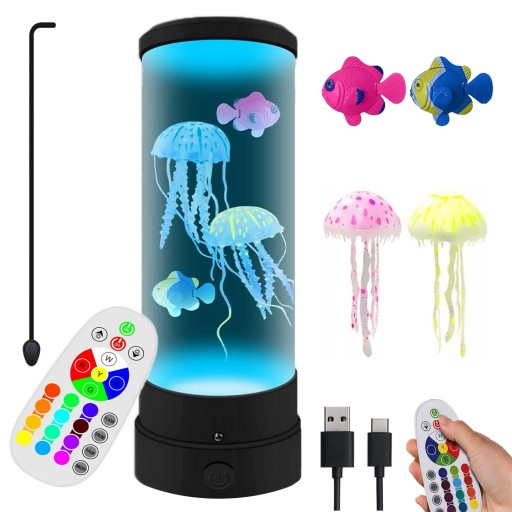 - 🌈Lampka nocna charakteryzuje się dużą przezroczystością, dzięki czemu można z łatwością obserwować podwodny świat. Wystarczy napełnić zbiornik lampy meduz wodą i dodać kilka kropel przezroczystego płynu do mycia naczyń, aby wszystko było nawilżone i działało sprawnie.