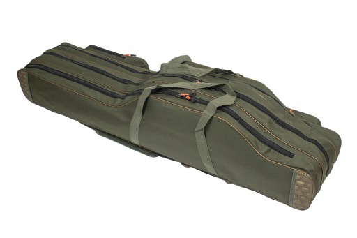 Usztywniany pokrowiec trzykomorowy z twardymi ściankami dający wędkom 100% ochrony. Bardzo wysoka jakość wykonania. Materiał w 100% chroniący przed wodą. Dwie kieszenie boczne na akcesoria. Torba posiada szelki do noszenia wędek na plecach oraz normalne, typowe uszy.