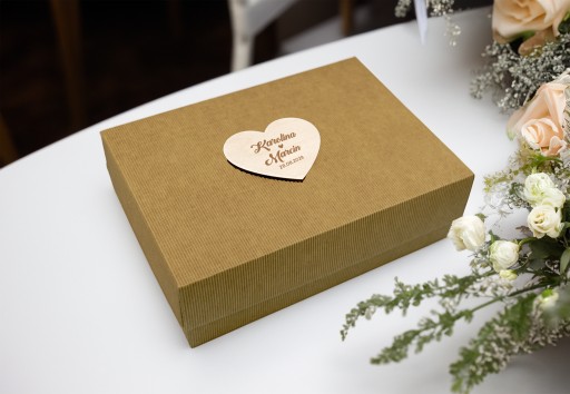 Całość jest ozdobnie zapakowana w elegancki i trwały kartonik, dzięki czemu prezent można zamówić bezpośrednio do wybranej osoby, w sytuacji gdy nie będą Państwo w stanie wręczyć go samodzielnie. Dodatkowo na środku wieczka pudełka, została umieszczona ozdobna drewniana dekoracja, która doskonale uzupełnia prezent i czyni go jeszcze bardziej wyjątkowym! Pudełko z powodzeniem może być używane w przyszłości do przechowywania drobnych przedmiotów (np. zdjęć).