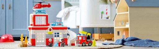 - Ciekawa remiza strażacka -- w zestawie LEGO(R) DUPLO(R) Rescue Remiza strażacka i helikopter (10970) znajdziesz sympatyczne figurki, wesołe funkcje i mnóstwo możliwości rozwijającej zabawy