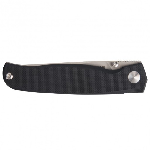 Głownia noża została wyprofilowana w charakterystyczny wharncliffe o opadającym ku sztychowi grzbiecie. Geometria ta łączy w sobie doskonałe właściwości tnące z bezpieczeństwem użytkowania, przez co doskonale sprawdzi się w nożu EDC. Zastosowana w nożu stal 154CM to prawdziwy klasyk jeśli chodzi o materiały wykorzystywane na głownie noży składanych. Łączy w sobie możliwość wysokiego hartowania, dzięki czemu długo trzyma ostrość z odpornością na wykruszenie i relatywnie wysoką nierdzewnością. Naniesiona na głownię faktura skutecznie ukrywa powstające podczas użytkowania zadrapania.