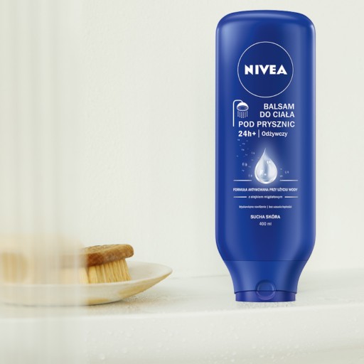 Mleczko do ciała pod prysznic firmy NIVEA ze specjalną formułą aktywowaną wodą zapewnia skórze nawilżenie w ciągu kilku sekund. Formuła pozostawia skórę zadbaną i elastyczną.