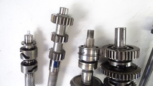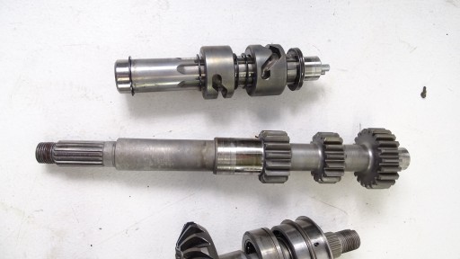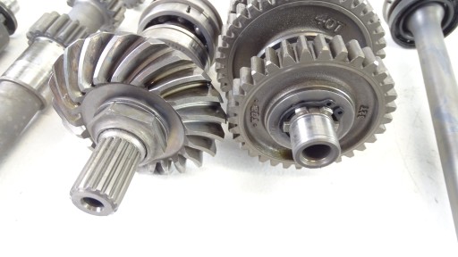 Kompletna skrzynia biegów, uszkodzony gwint jednego wałka pokazany na foto, poza tym w bardzo dobrym stanie, gładzie, frezy ładne, kły nie wyszczerbione, sprzedaję dokładnie to, co widać na zdjęciach.