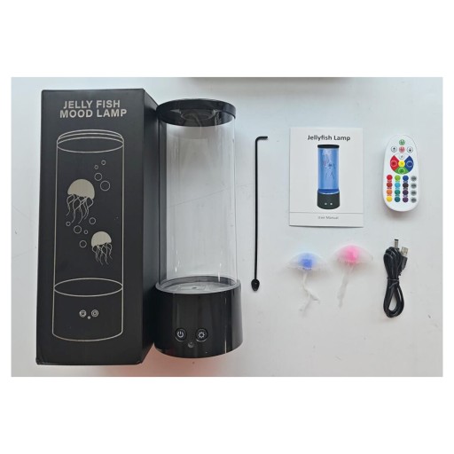 - Realistyczne sztuczne meduzy pływają po małych strumieniach wody wytwarzanych przez silnik wewnątrz lampy, tworząc idealną uspokajającą atmosferę i realistyczne, spokojne ruchy.