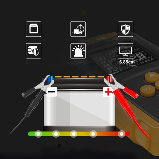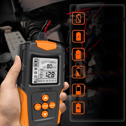 - Tester akumulatorów samochodowych współpracuje ze wszystkimi akumulatorami 12 V i 24 V o napięciu od 55 do 995, motocyklami, ciężarówkami, przyczepami kempingowymi, quadami, suvami, łodziami, jachtami, kosiarkami do trawy, a nawet wózkami golfowymi.
