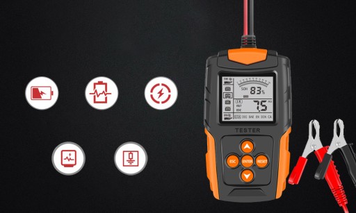 - Tester baterii daje wskazówki, gdzie wymienić baterię, inteligentnie analizując stan baterii. Przeznaczony jest do akumulatorów 12V/24V.
