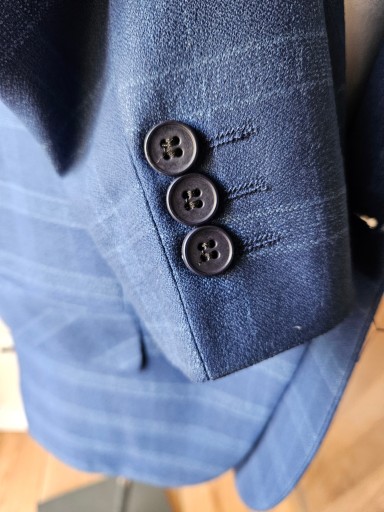 Solidnie wykonana. Świetny, taliowany krój. Zapinana na 1 guzik. Na rękawach 3 guziki.