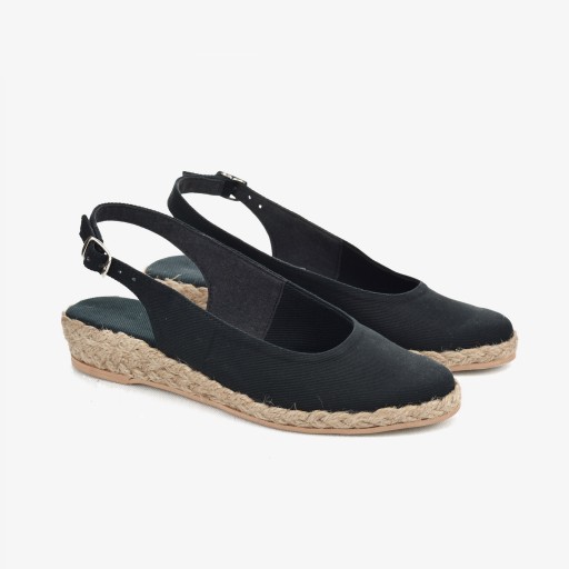 Espadryle płaskie odkryte czarne. Wysokość koturna 3 cm.