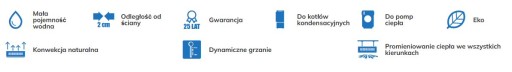 - niewielka masa własna i mała pojemność wodna to wysoka dynamika grzania, grzejniki szybko osiągają pełną moc znamionową dla danej temperatury zasilania