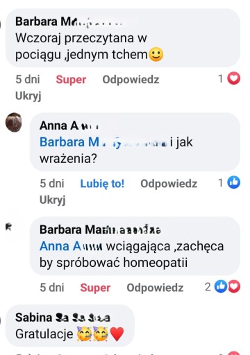 Jedna z recenzji: "Książka, w sposób bardzo przystępny nawet dla laika, wyjaśnia zasady homeopatii. Do tej pory nie spotkałam się w literaturze z takim wyjaśnieniem. A do tego - apteczka pierwszej pomocy, wymieniona, opisana, do wykorzystania dla każdego, do własnego i bliskich użytku. Obowiązkowa pozycja!"