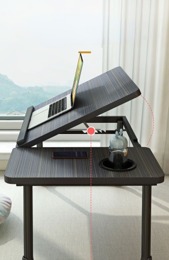 Specjalny mechanizm pozwala na podniesienie jednej części stolika. Dzięki temu możesz wygodnie korzystać ze swojego laptopa lub tableta. Dodatkowy otwór pozwoli Ci przechować kubek lub szklankę z ulubionym napojem.