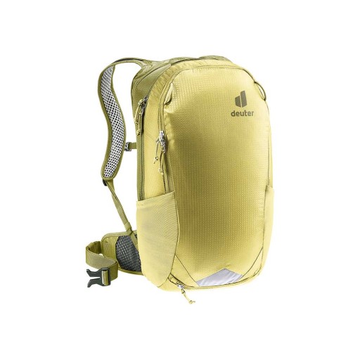 Jego pojemność można łatwo i dowolnie zmniejszać lub powiększać dzięki zastosowanemu wokół obwodu suwaka, który pozwala na zwiększenie podstawowej pojemności plecaka o 3 litry. Race Air 14+3 jest plecakiem przeznaczonym do wyścigów rowerowych, krótkich wycieczek, ale również do uprawiania sportów wytrzymałościowych, takich jak narciarstwo biegowe. Plecak posiada chowany uchwyt na kask oraz kieszeń od frontu wyposażoną w przemyślany organizer. Komora główna posiada przegrodę dedykowaną pod zastosowanie bukłaka. Zastosowany system Deuter System doskonale sprawdzi się w upalne dni, przy dużej aktywności, jak i wtedy, gdy używamy odzieży z membraną. Plecak wyposażono również w pokrowiec przeciwdeszczowy - w kolorze żółtym. Po obu stronach plecaka znajdują się niewielkie elastyczne kieszenie idealne na przechowywanie batonów energetycznych. Z jednej strony z boku znajduje się kieszeń zapinana na suwak, idealne miejsce na telefon komórkowy.