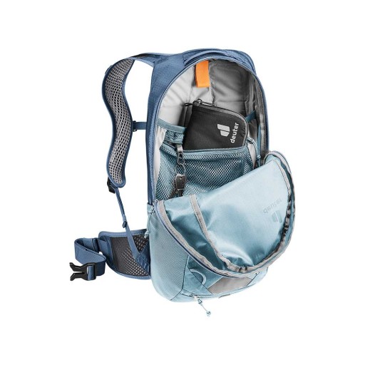 Deuter Race 8 to ulubiony model rowerzystów, a także biegaczy. Jego wszechstronne przeznaczenie wynika z bardzo niskiej wagi i kształtu, który nie krępuje ruchów. Wykonanie pasów nośnych i biodrowego z doskonale oprowadzającej gorące powietrze siatki pozwala na utrzymanie optymalnego klimatu skóry w czasie upałów. Plecak wyposażono również w pokrowiec przeciwdeszczowy - w kolorze żółtym. Jest on chowany w małej kieszeni na dole plecaka. Wysoką funkcjonalność Deuter Race 8 zawdzięcza wielu kieszonką. W komorze głównej znajduje się przegroda na bukłak oraz siatkowa kieszeń z zamkiem oraz uchwytem na klucze. Po obu stronach plecaka znajdują się elastyczne siatkowe kieszenie idealne na batony energetyczne. Na froncie znajdują się również uchwyty do mocowania siatki na kask (siatka nie jest częścią wyposażenia). Z jednej strony z boku znajduje się kieszeń zapinana na suwak, idealne miejsce na telefon komórkowy.