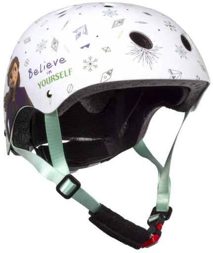 Na zewnątrz wykonany jest z trwałej i wytrzymałej powłoki ABS, wewnątrz znajduje się absorbująca uderzenia pianka EPS. Kask ozdobiono kolorowymi wzorami przedstawiającymi bohaterów z bajek Disney.