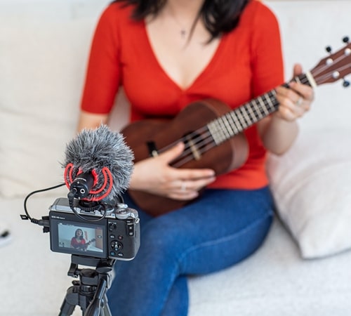 Superkardioidalny mikrofon pojemnościowy shotgun do kamer, lustrzanek, tabletów i telefonów.