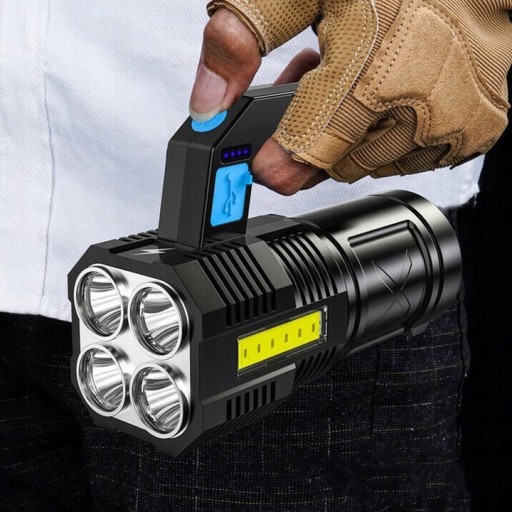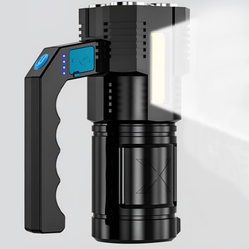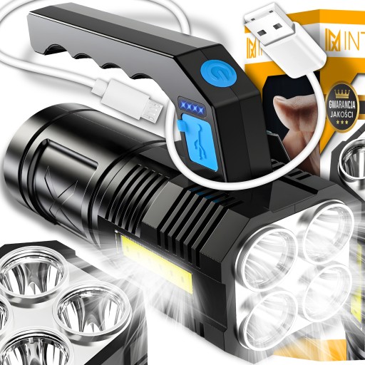 - Dwa Rodzaje Diód: 4 białe diody T6 dla skupionego światła i 1 biała dioda COB dla oświetlenia bocznego.