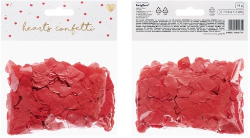 - Konfetti Serca w kolorze czerwonym to doskonały sposób na stworzenie romantycznej atmosfery. W opakowaniu znajdziesz około 15 g bibułowego konfetti o wymiarach około 1,6 x 1,6 cm.