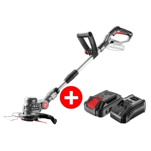 Zestaw E+: podkaszarka (58G030) + akumulator 2ah + ładowarka 58G030-BC marki GRAPHITE to komplet ogrodowej podkaszarki akumulatorowej z akcesoriami, osiągającej obroty 9000 min?1. Urządzenie oferuje możliwość koszenia na szerokości 254 mm. Regulacja długości rękojeści od 1,1 do 1,4 m pozwala lepiej spersonalizować podkaszarkę względem użytkownika, a zestaw polimerowych 22 noży o długości 88,5 mm zapewniają skuteczne cięcie. Dodatkowo, komplet zawiera akumulator o pojemności 2 Ah marki GRAPHITE i ładowarkę o napięciu ładowania 22 V. Czas pełnego ładowania wynosi 1 h, a dzięki wskaźnikowi ładowania oraz elektronicznemu systemowi kontroli temperatury i przepływu prądu jest ona łatwa w użytkowaniu. System Energy+ zapewnia nowoczesne podejście do pracy z urządzeniami elektronicznymi.
