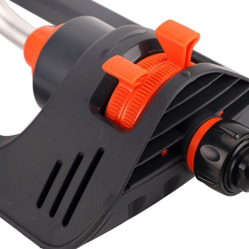 Szeroka podstawa zraszacza, zapewnia mu stabilność bez konieczności wbijania go w podłoże, została wykonana z tworzywa sztucznego odpornego na działanie promieni słonecznych.