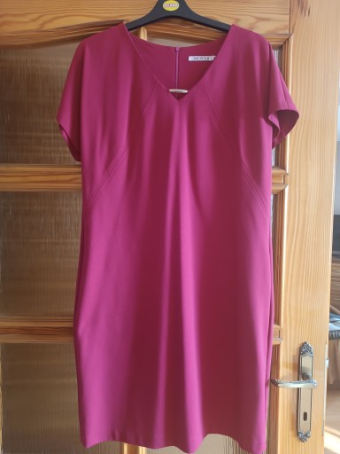 Sukienka firmy QUIOSQUE rozmiar 40, kimonowy rękaw, zapinana na z tyłu na zamek, dwie kieszenie w bocznych szwach, kolor fuksja, brak metki ze składem materiału (dobra gatunkowo dzianina).