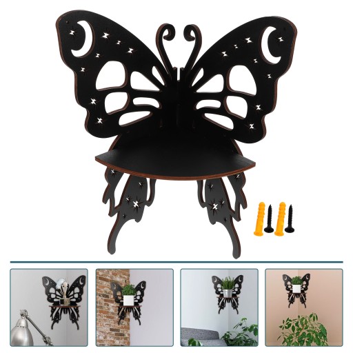 ✅Unikalna konstrukcja drewnianej półki narożnej kątowej ma pusty wzór w kształcie motyla, delikatny i dekoracyjny.