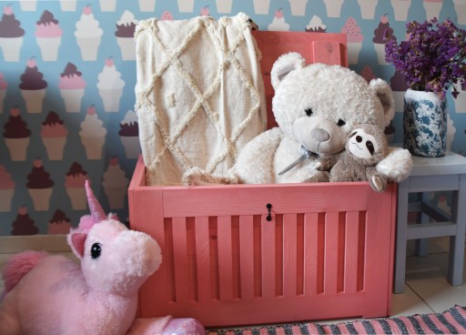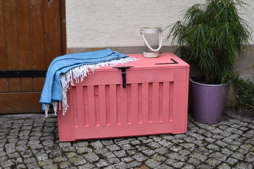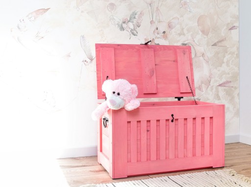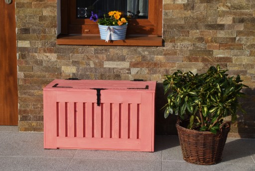 Przedstawiamy Państwu skrzynię wykonaną z drewna sosnowego w kolorze różowym.