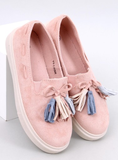 Mokasyny - trampki damskie zamszowe. Urocza kokardka wykończona frędzelkami sprawia, że nie można oderwać wzroku. Model typu slip-on gwarantuje szybkie i bezproblemowe zakładanie. Czego chcieć więcej? : ) Wnętrze butów wyścielone jest tkaniną. Materiał zewnętrzny – zamsz ekologiczny.
