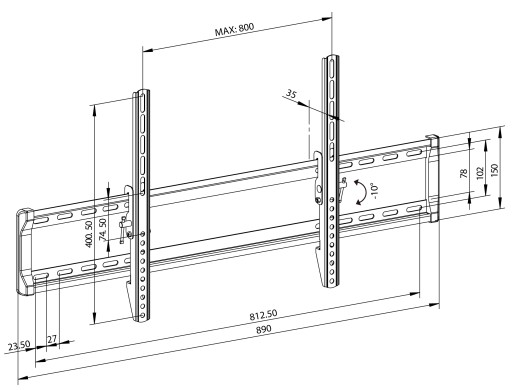 Komfort użytkowania zapewnia możliwość regulacji kąta pochylenia od -10° do 0°. To pozwala na dostosowanie pozycji telewizora do indywidualnych potrzeb i warunków w pomieszczeniu. Dodatkowo, odległość uchwytu od ściany wynosi jedynie 35 mm, co sprawia, że jest on niemal niewidoczny i nie zaburza estetyki wnętrza.