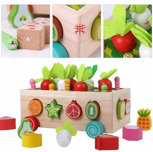 - ✅ NAUKA POPRZEZ ZABAWĘ - wyrywanie marchewek, rozpoznawanie owoców, dopasowywanie kształtów, przewożenie zabawek wózkiem, rozpoznawanie kolorów oraz łapanie robaków sprawią, że maluch rozwinie umiejętności motoryczne, koordynację wzrokowo-ruchową, a także zdolności poznawcze takie jak rozpoznawanie kolorów i kształtów.