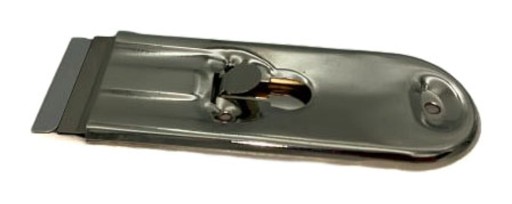Skrobak metalowy do szyb Extra na wymienne ostrza, solidny i wytrzymały, niklowany korpus. Do dokładnego usuwania zanieczyszczeń (resztek farb, lakierów, naklejek) z szyb lub innych płaskich i twardych powierzchni.