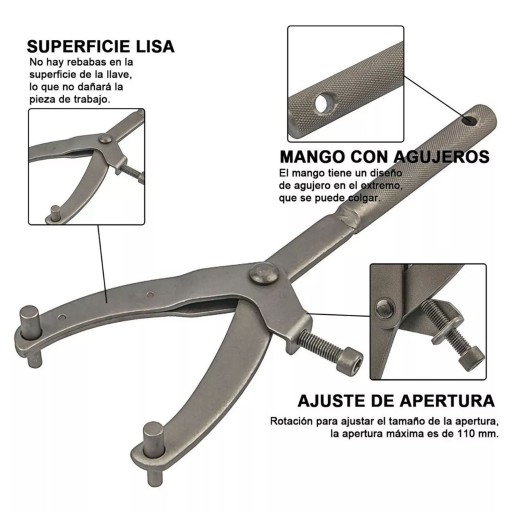 4. Klucz nastawny: Regulowane śruby i kołki po obu stronach sprawiają, że ten klucz nadaje się do różnych odległości między szczelinami i różnych rozmiarów szczelin.