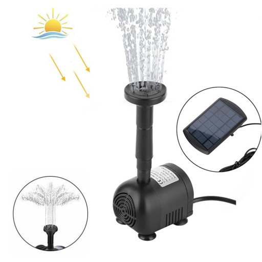 - Produkt jest pompą wodną z napędem bezpośrednim, bez dodatkowego akumulatora. Wysokość strumienia wody zależy całkowicie od siły słońca. Gdy słońce jest słabe, pompa nie będzie działać w sposób ciągły. Automatycznie będzie kontynuować pracę, gdy światło słoneczne będzie mocne.