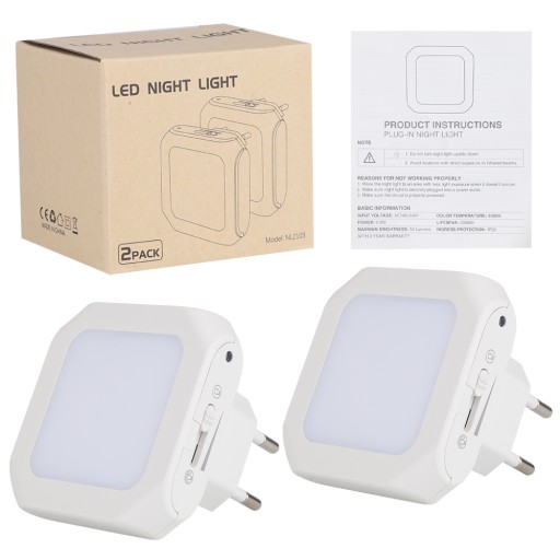 💡oświetlenia: ta lampa z wtyczką ma trzy tryby oświetlenia: wł./automatyczny/wył., możesz ją wyłączyć, gdy jej nie potrzebujesz. Tryb włączenia: jest włączony przez cały dzień. Tryb automatyczny: automatycznie dostosowuje jasność do oświetlenia otoczenia, włącza się automatycznie w nocy lub gdy otoczenie jest słabe i wyłącza się automatycznie w ciągu dnia lub przy dobrym świetle. Tryb wyłączenia: Możesz wyłączyć lampkę nocną LED w dowolnym momencie.