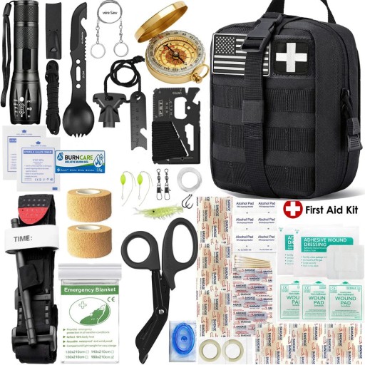 Emergency survival equipment and emergency supplies, designed for camping, hiking, hunting and mountain biking adventure trips, to meet any medical or emergency needs.